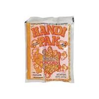 These 8 oz. Handi Paks from Great Western take the guessing out of making popcorn. They contain just the right amount of coconut oil, popcorn kernels and seasoning to make perfect, theater quality popcorn every time. The Handi Pak’s portion control means you never have to measure messy oil or heavy kernel bags. Just pour into your favorite popcorn machine and youre ready to start popping. No mess, no fuss! The 8 oz. Handi Pak popcorn pack is perfectly measured for 8 oz. popcorn machines. 24 8-ounce packs per case.